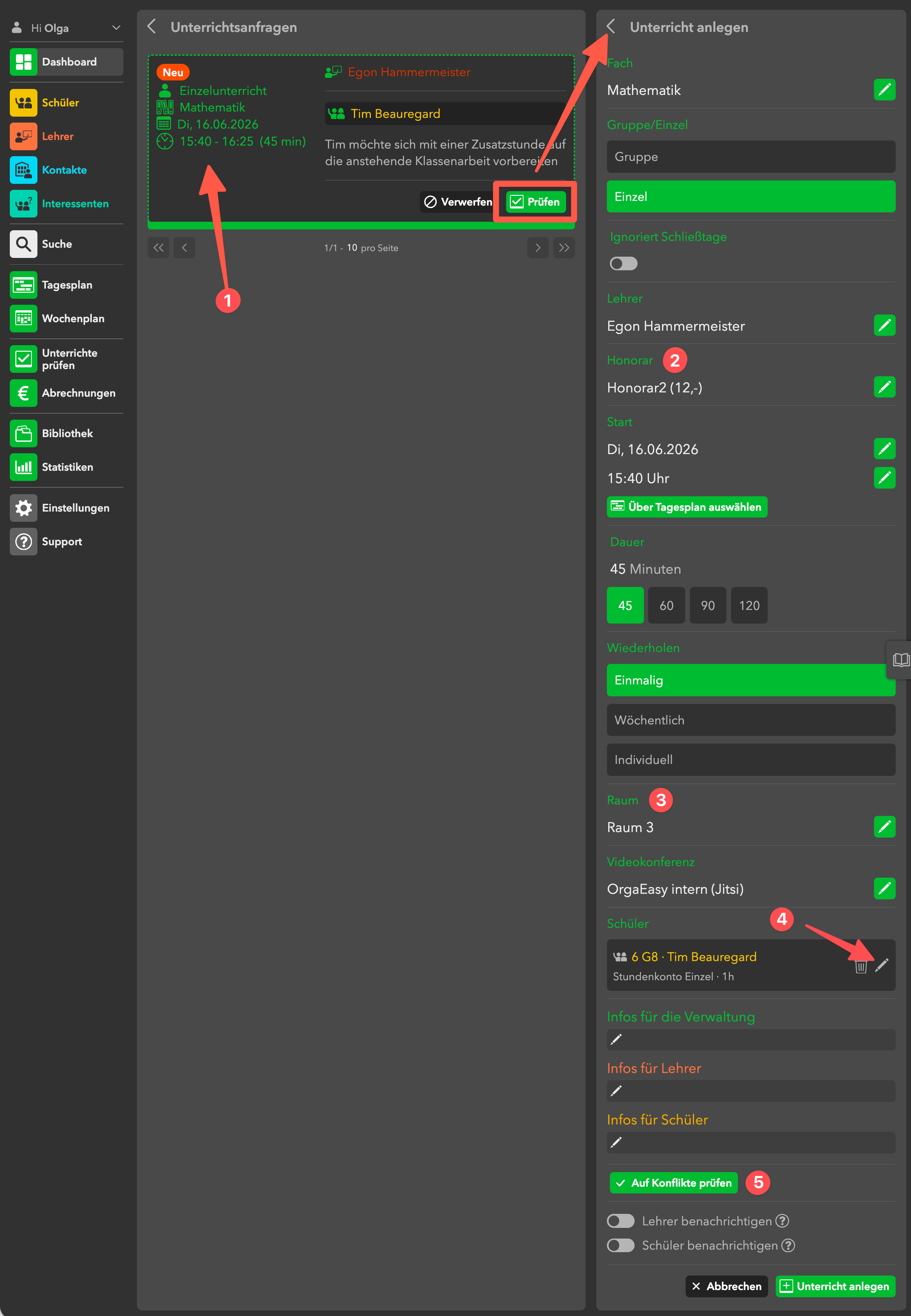 Aus diesem Grund erfolgt die finale Planung und Anlage der Unterrichte in der Regel durch die Verwaltung.