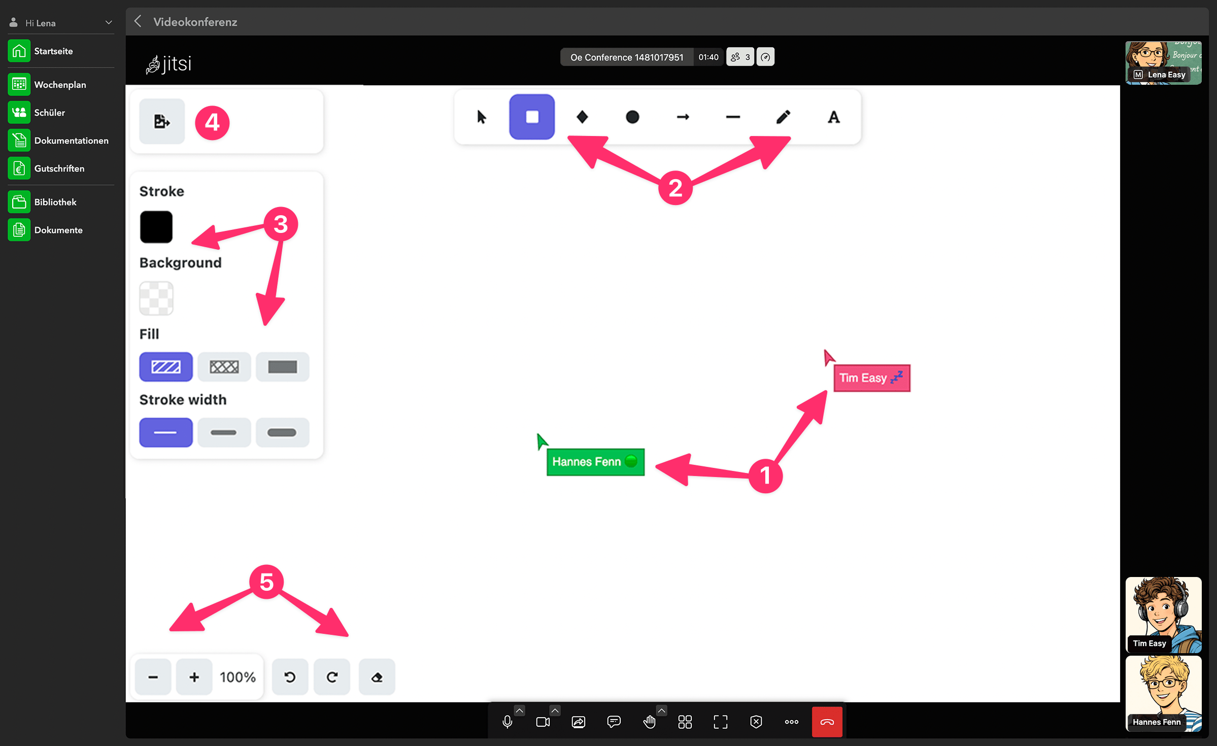 Auf dem Whiteboard werden die Mauszeiger der anderen Teilnehmenden angezeigt.