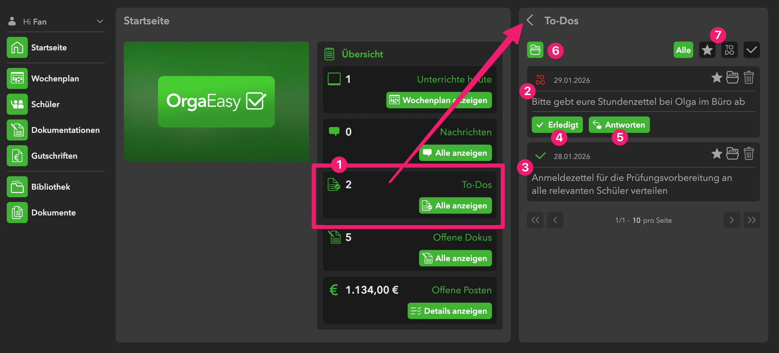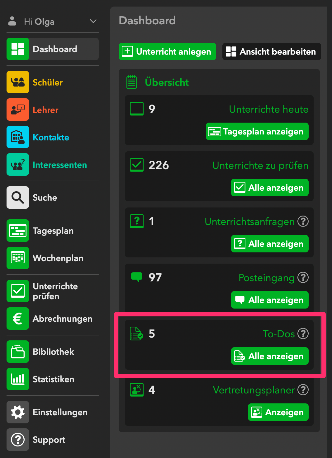 Deine Schüler, Lehrer und Interessenten sehen die ihnen zugeteilten To-Dos in ihren Online-Portalen: